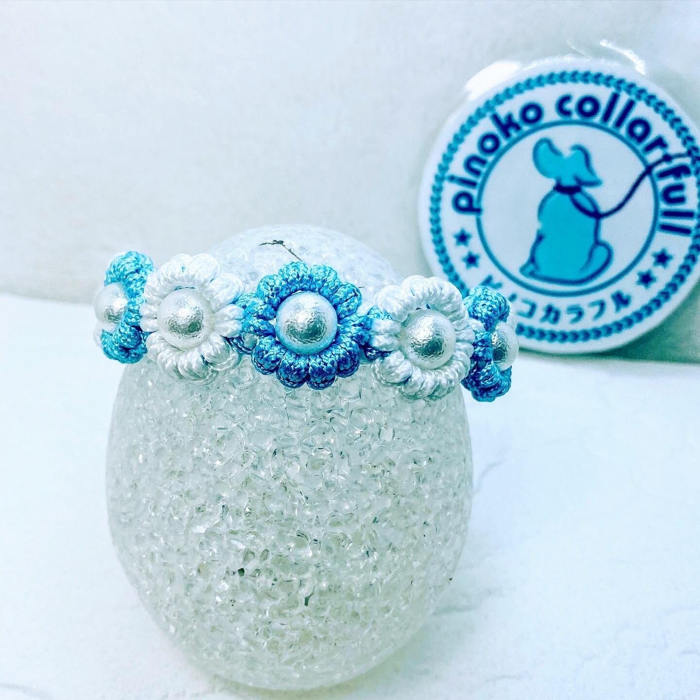 光沢のある水色とホワイトで清楚なイメージのお花の首輪なので、男の子にも女の子にもよく似合います。
