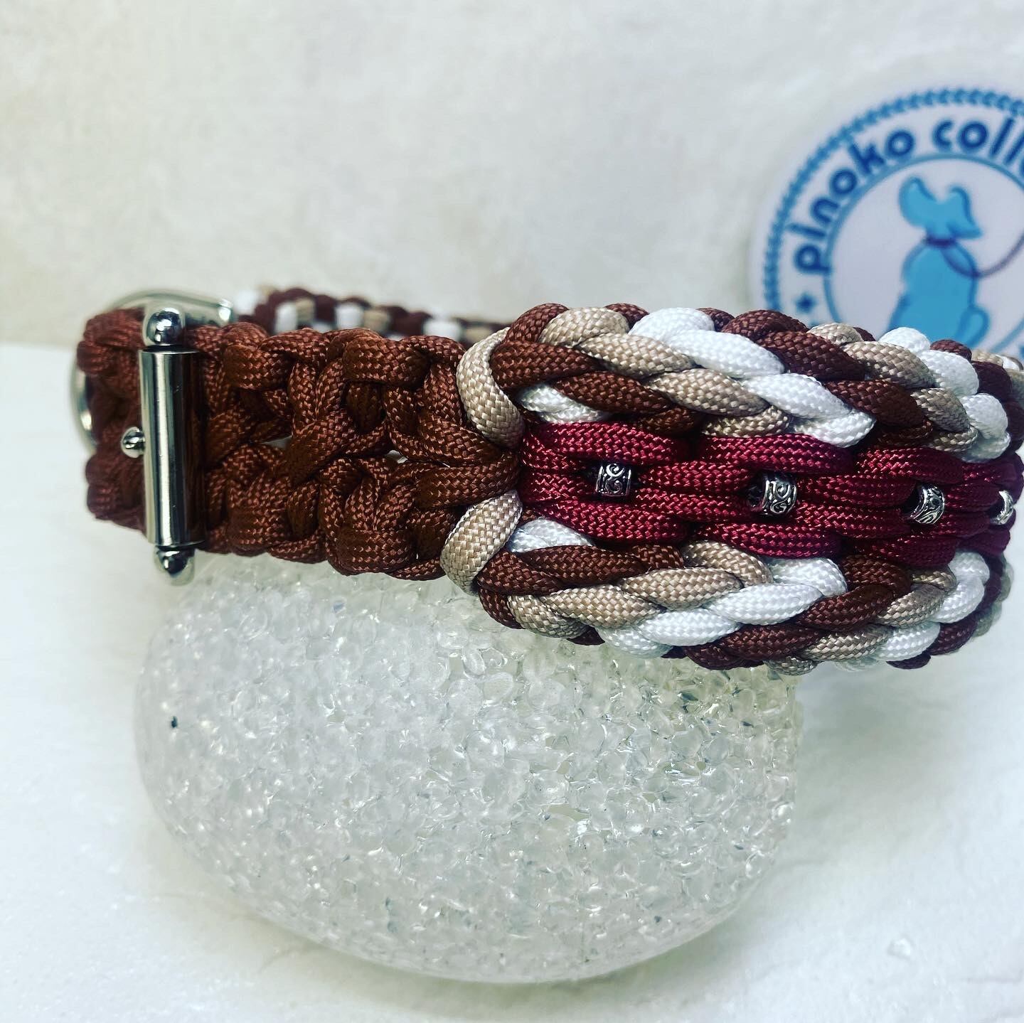 ベルト部分は穴の空いた薄いデザインで編んでいますので着脱もスムーズです。(バックル、ハーフチョークに変更可能です。その場合は1,000円値引きいたします。)