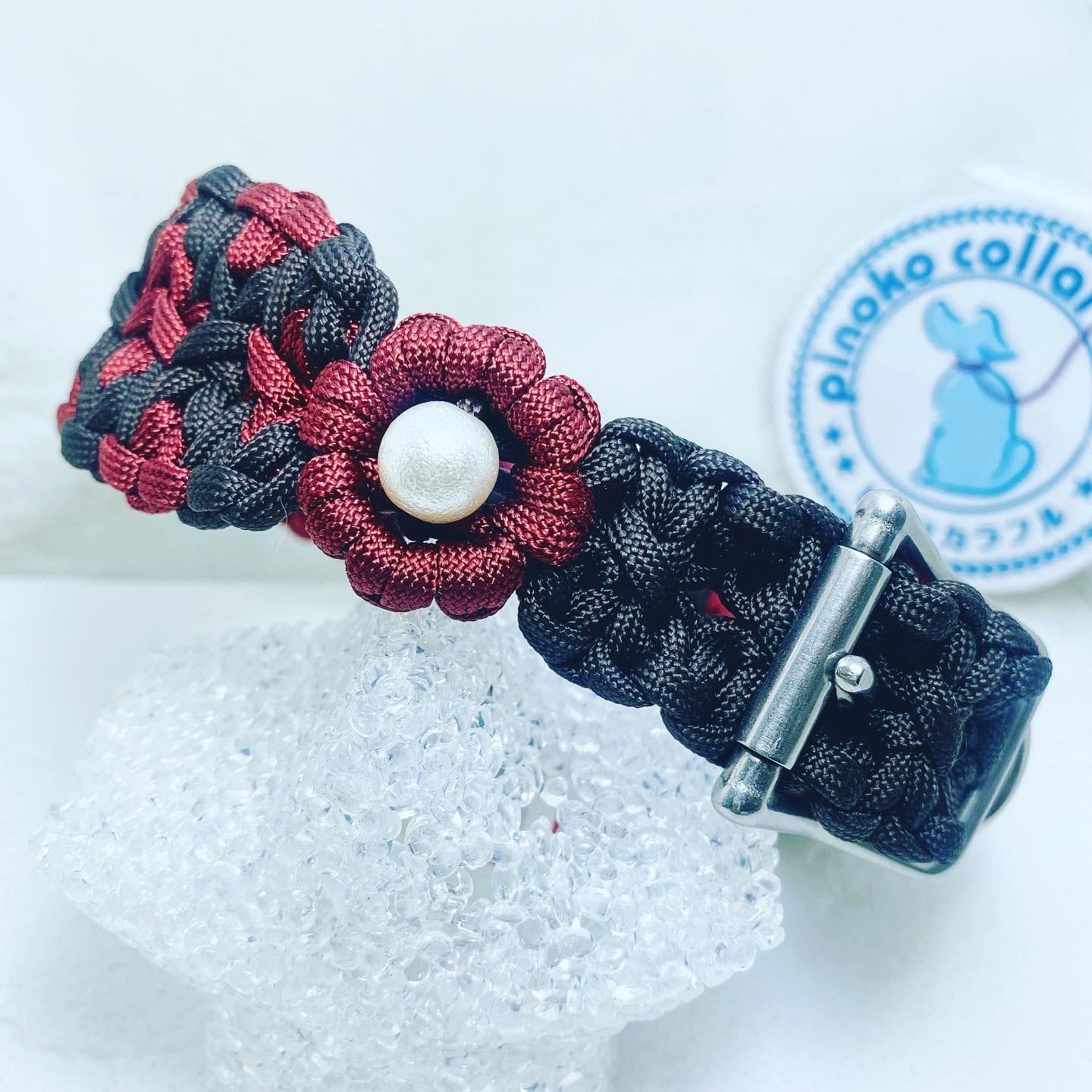 ポイントにお花を付けたオリエンタル模様の首輪は薄くて軽いタイプのデザインです。
